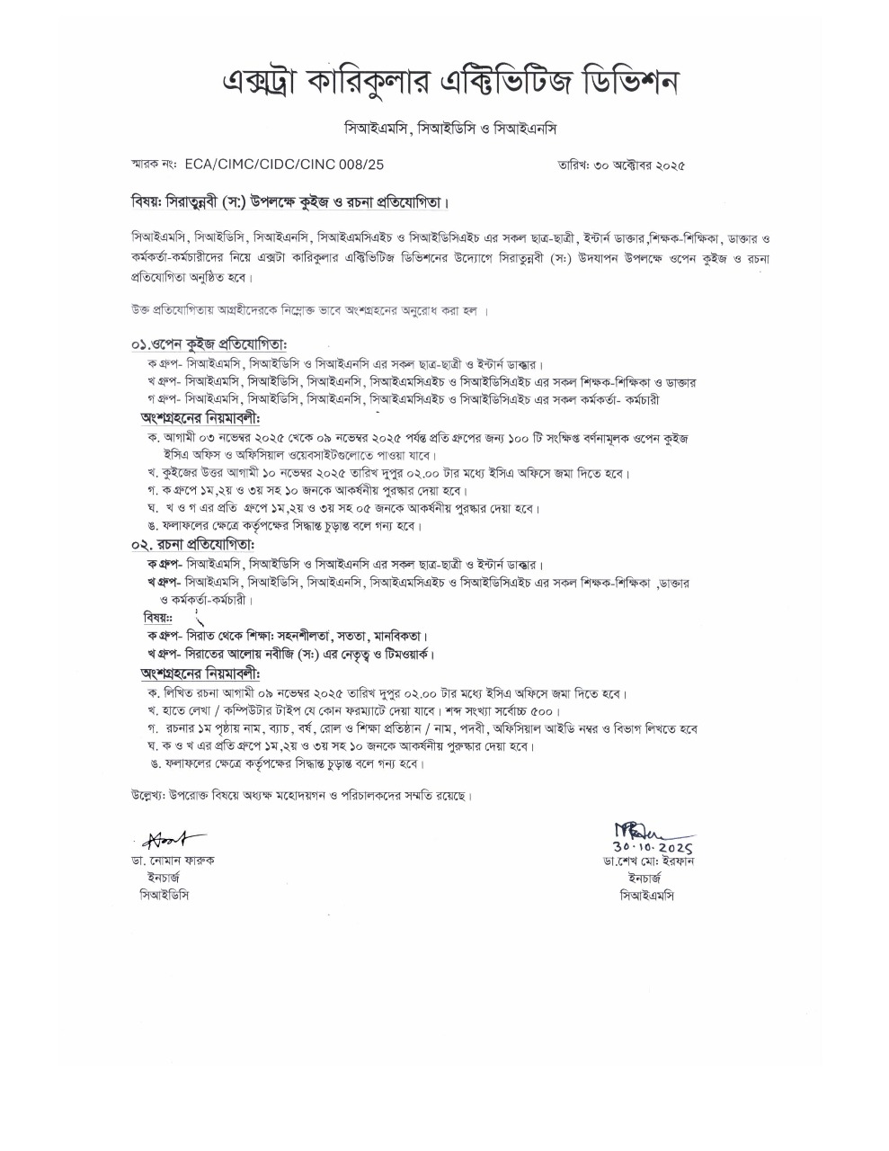 সীরাতুন্নবী (স:) উপলক্ষে কুইজ ও রচনা প্রতিযোগিতা